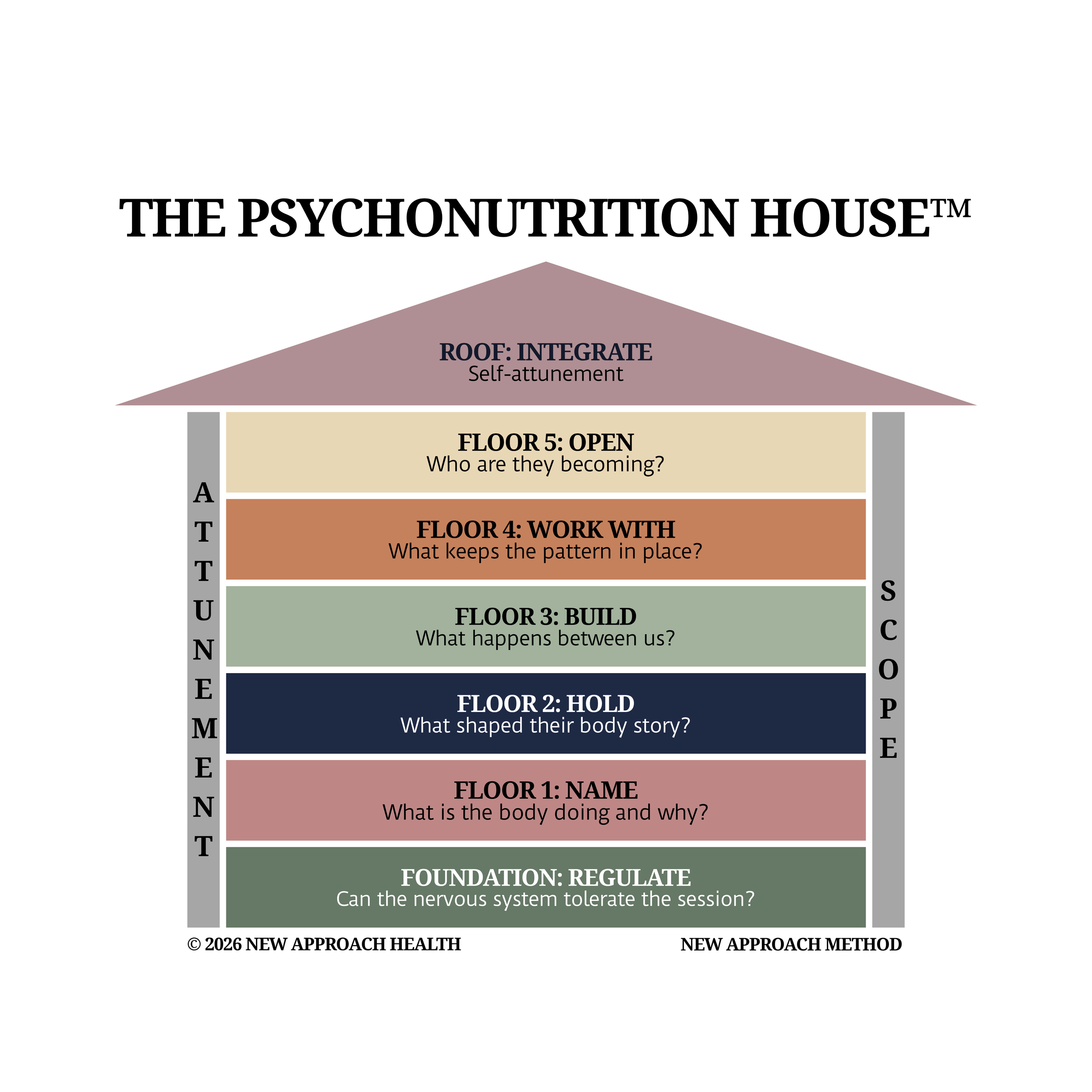 Emahlea runs a trauma-informed nutrition therapy practice with a team of 11 dietitians working with eating disorders, gut health, nervous system dysregulation, and the cases where a client's eating problem is really a stress problem, an attachment problem, or a meaning problem. The Psychonutrition House came out of that clinical work: a structured, scope-safe way to hold nervous system patterns, disordered eating, body image, attachment, and meaning inside a single nutrition care model.
